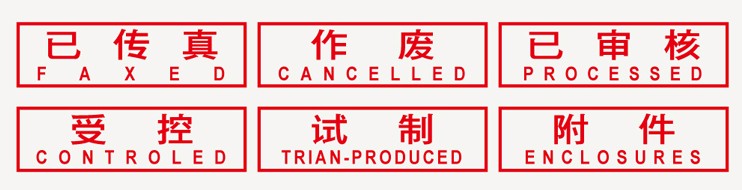 六款印章:已传真 作废 已审核 受控 试制 附件